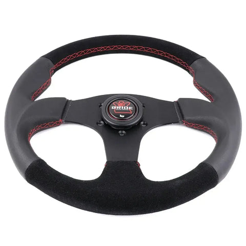 Upgrade your interior with the BRD 325mm JDM Steering Wheel, a flat dish racing-style wheel built for both aesthetics and performance. Measuring 13 inches, it's made from high-quality PVC or suede leather with a strong yet lightweight aluminum alloy spoke.