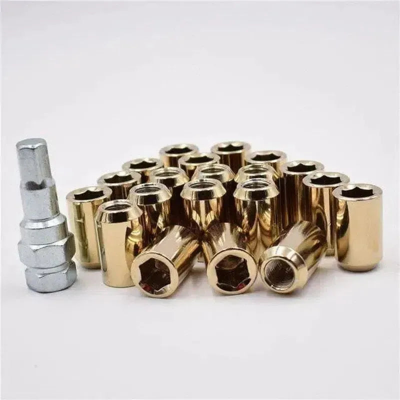 Upgrade your car's aesthetic appeal and performance effortlessly with our JDM lug nuts. Whether you're looking to enhance the aesthetics of your car or optimize its performance on the track, these lug nuts are the perfect choice. Compatible with a range of car models, they offer a distinctive and stylish customization option for your vehicle, making them tuner style lug nuts that stand out from the rest. Upgrade your car's appeal and performance effortlessly with these tuner lugnuts.