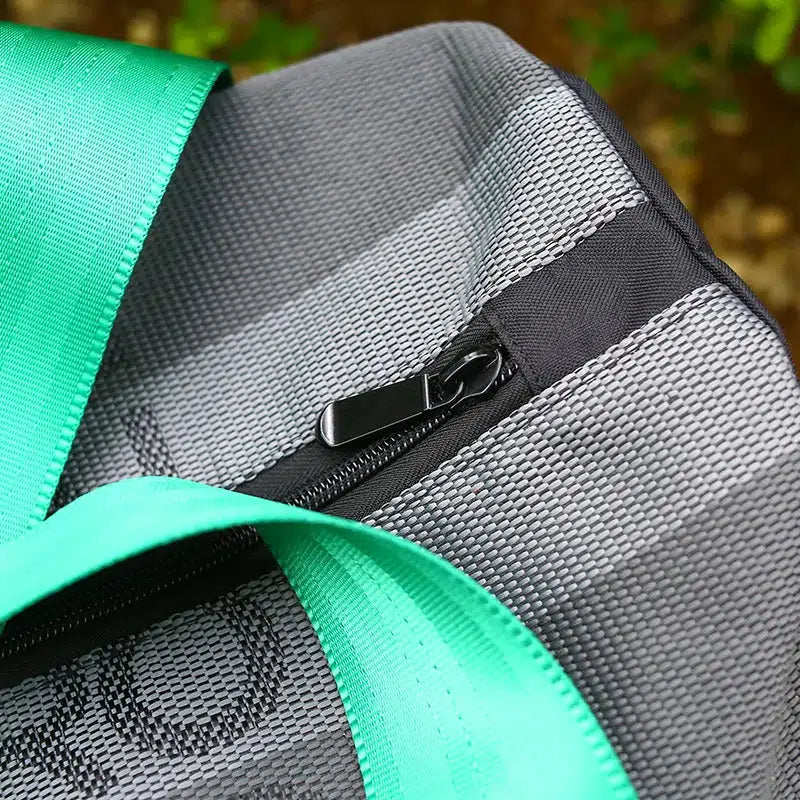 Elevate your style with the JDM Style Japan RCR Duffle Bag, the perfect accessory for car enthusiasts and drift fans. Combining authentic racing fabric with bold green and black seat belt harness straps, this duffle exudes JDM-inspired style while offering exceptional practicality.