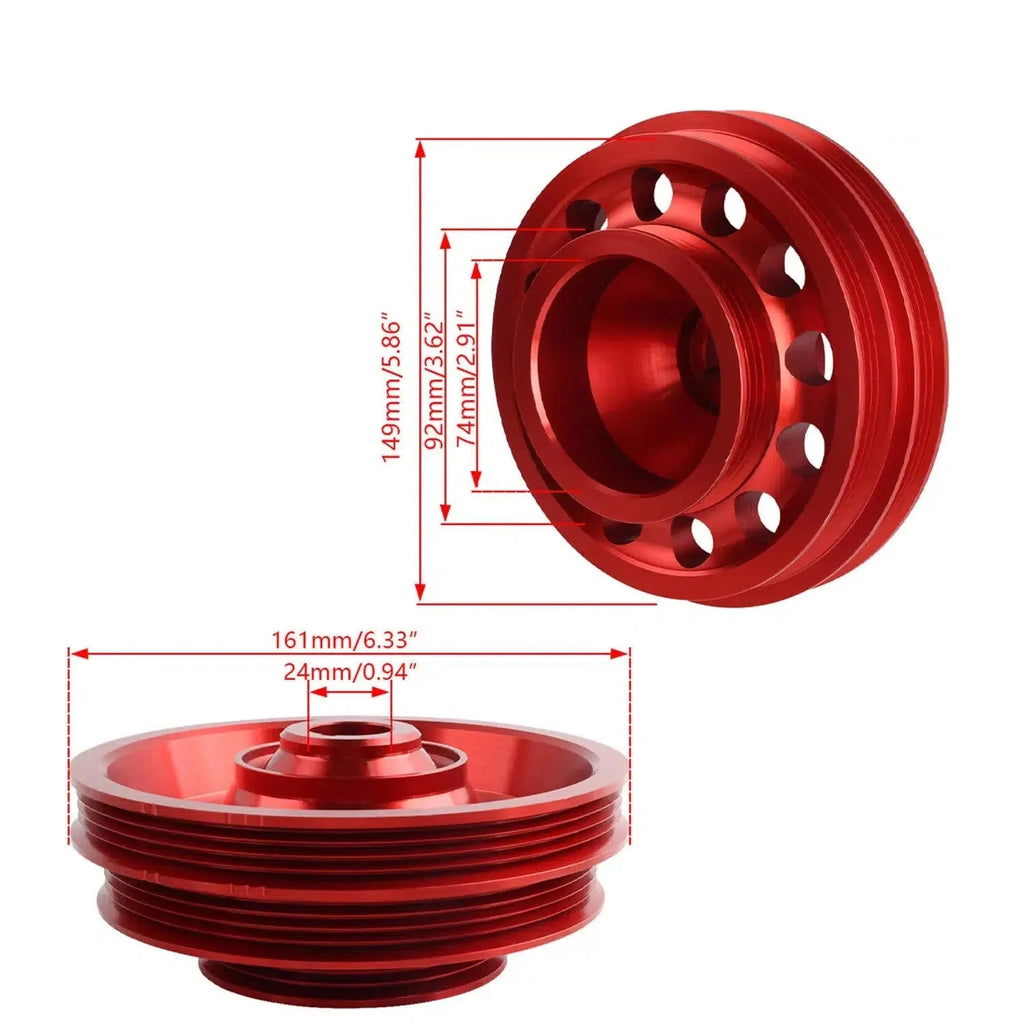 CNC machined to .001 tolerances, this crankshaft pulley is hard anodized with a matte finish in gunmetal for a long-lasting and beautiful look. Designed to offer better than OEM belt fitment and alignment, this pulley uses factory-sized belts, eliminating any need to change belts and avoiding charging or overheating issues.