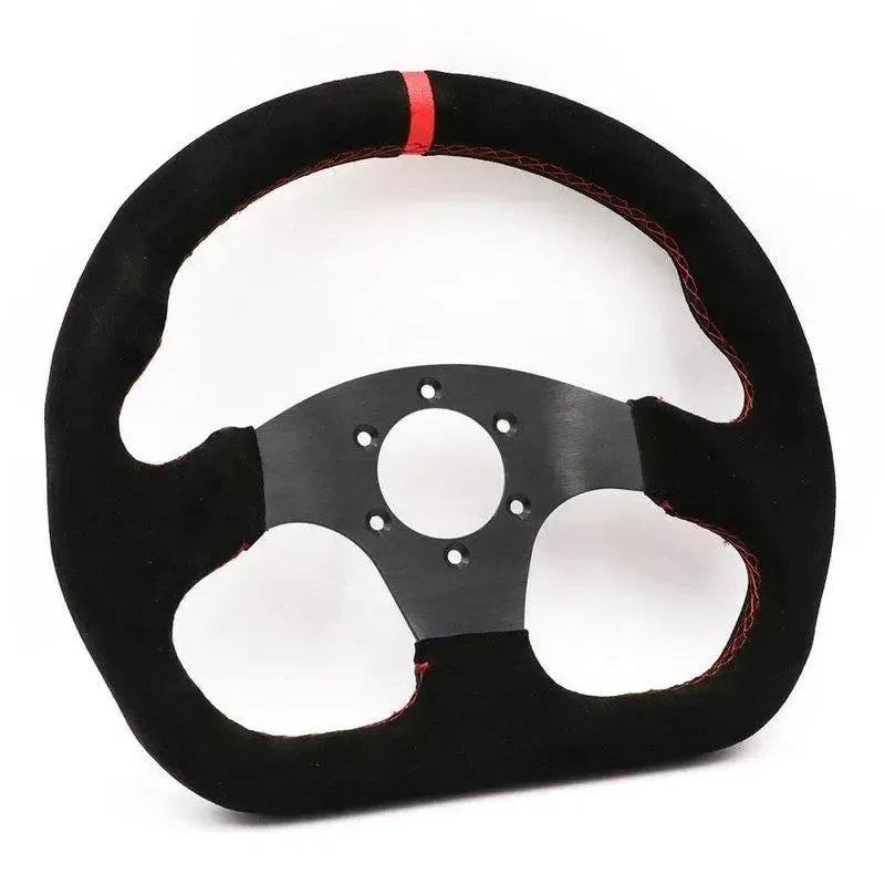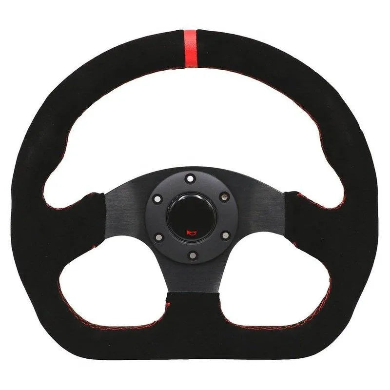 The Universal 13" Red Suede Racing Steering Wheel is designed for sharp control with a bold motorsport look. Its compact size and flat profile deliver quick steering response for track, rally, or performance street builds.